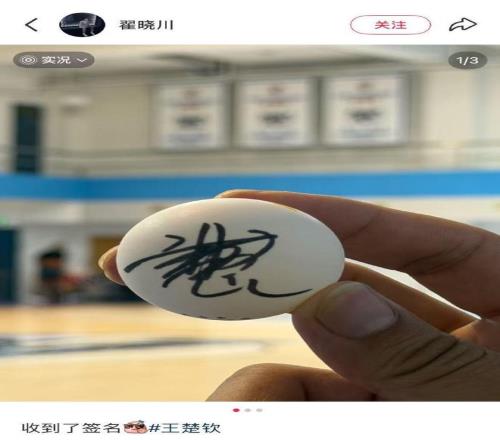 近日,趙睿、翟曉川現(xiàn)場(chǎng)觀戰(zhàn)WTT中國(guó)大滿貫的比賽,賽后,兩位球員都在社媒曬出了王楚欽的簽名。
