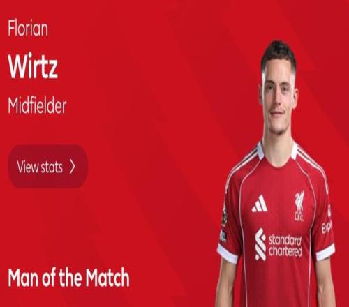 此役主場對陣?yán)顷?,首發(fā)出戰(zhàn)的維爾茨在比賽第42分鐘接埃基蒂克助攻破門,斬獲利物浦生涯處子球,幫助利物浦最終以2-1的比分取勝。