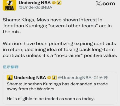 同樣來自Shams的消息源,去年休賽期簽約的兩年4680萬美元續(xù)約合同(第二年球隊(duì)選項(xiàng)),庫明加認(rèn)為自己是被迫簽署的,此舉進(jìn)一步惡化了他與勇士管理層的關(guān)系。