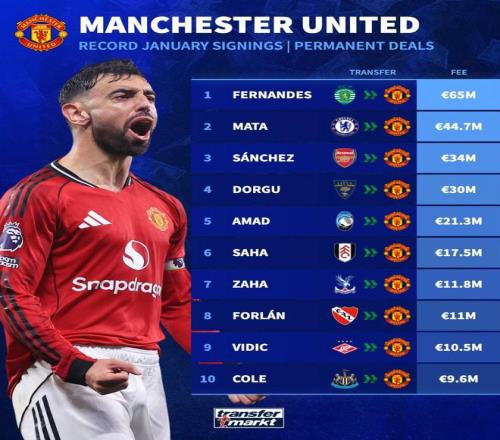 北京時(shí)間1月19日,德轉(zhuǎn)統(tǒng)計(jì)出了曼聯(lián)隊(duì)史冬窗最貴的10筆引援,布魯諾-費(fèi)爾南德斯6500萬(wàn)歐元高居第一,馬塔4470萬(wàn)歐元第二,桑切斯3400萬(wàn)歐元第三。