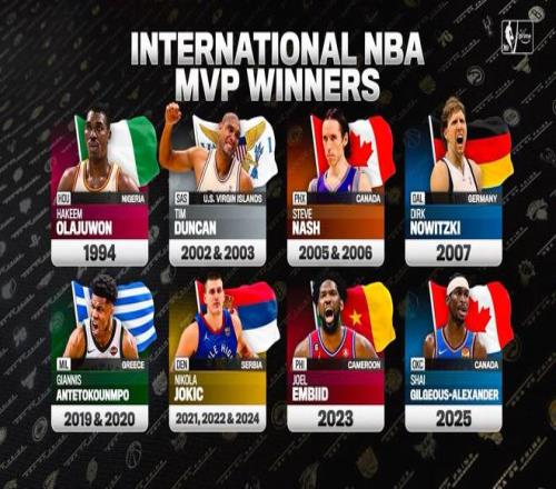 北京時間今日,在NBA直播期間,轉(zhuǎn)播方曬出了NBA歷史上所有的國際球員榮獲常規(guī)賽MVP的名單,約基奇、字母哥等人悉數(shù)在列。