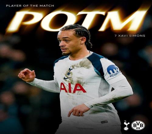 熱刺官方宣布,哈維-西蒙斯當選球隊與多特蒙德一役隊內(nèi)最佳球員。
