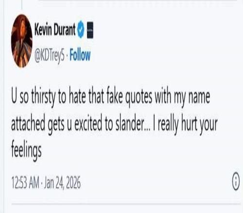 對此,杜蘭特本人在社媒上回應球迷:“你是真的相信這話是我說的,還是單純掉進了別人設(shè)的圈套?”